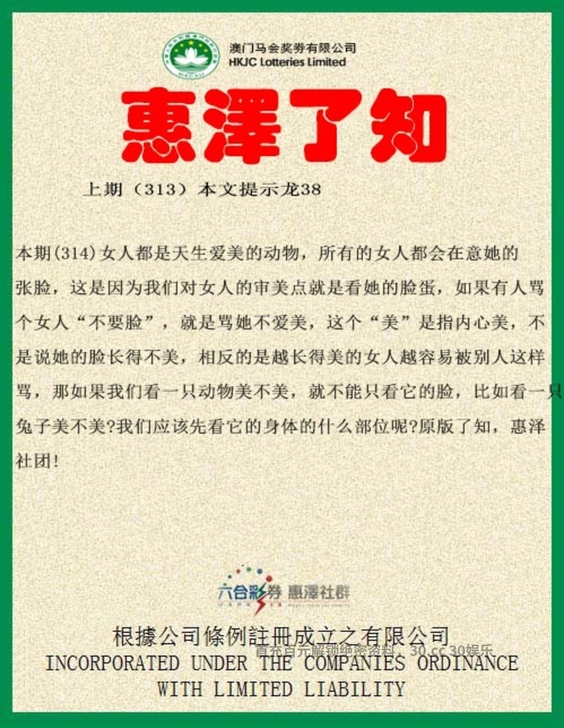 惠泽社群精品资料网所提供的内容、资料、图片和资讯,只应用在合法的澳门⑥合彩资料探讨,暂不适用于其它,外围博彩和使用。特此声明!